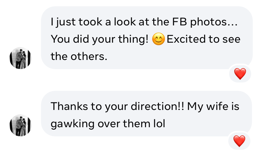 “OMG!! Love love love the pictures! I cried all over again. Thank you so much! xoxo!”